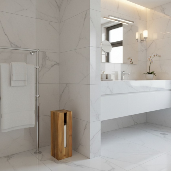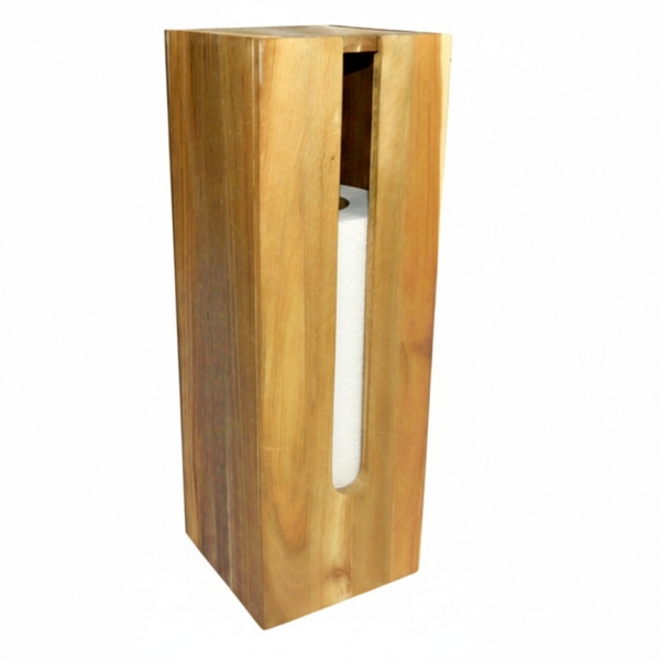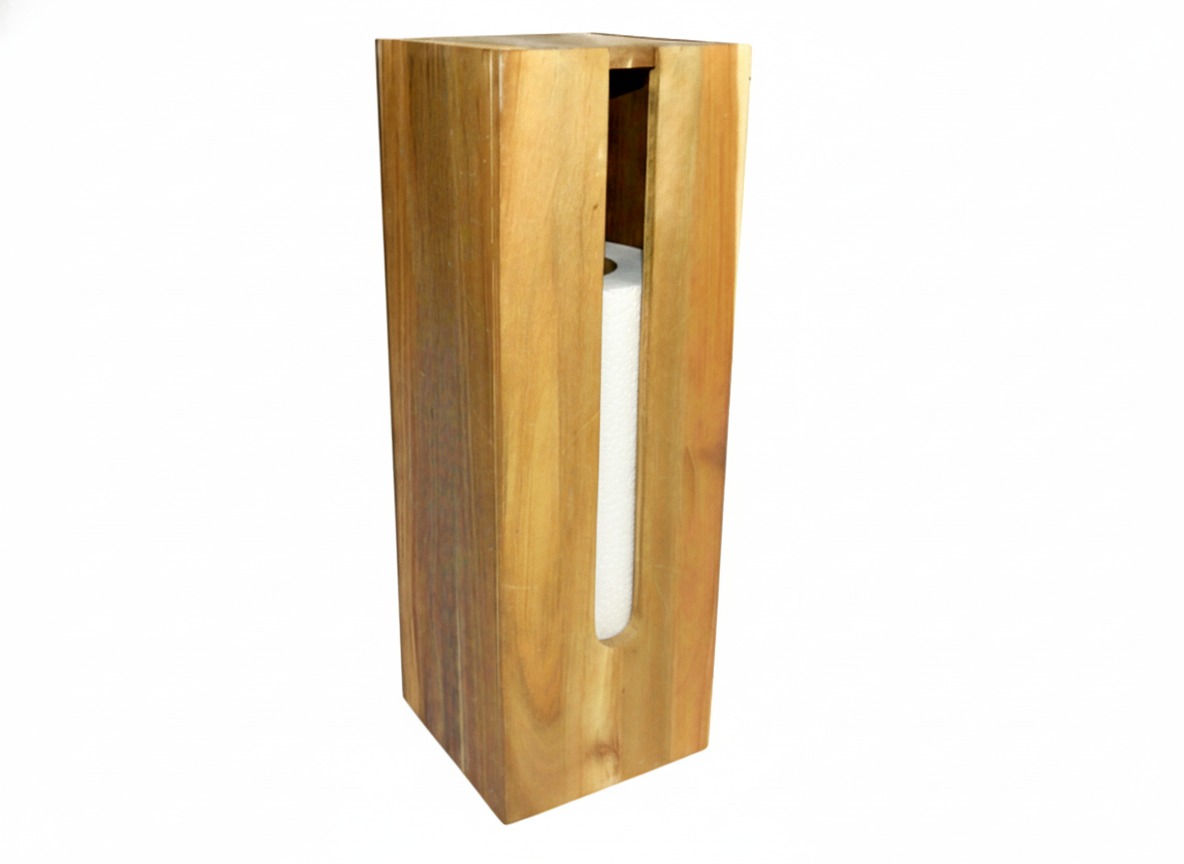 This elegant Acacia wood paper roll holder offers a stylish and practical solution for storing your kitchen towels or toilet paper. Crafted from durable Acacia wood, known for its beautiful grain and natural resistance, this vertical dispenser features a sleek, minimalist design that complements various home decors, from rustic to modern contemporary. The tall, rectangular shape with a central slot allows for easy dispensing of standard paper rolls, keeping them tidy and accessible. Perfect for kitchen countertops, bathroom vanities, or even craft rooms, it adds a touch of natural warmth and sophistication. Enhance your home organization with this eco-friendly and sturdy wooden accessory. Its compact footprint ensures it fits seamlessly into smaller spaces while providing essential functionality.