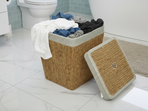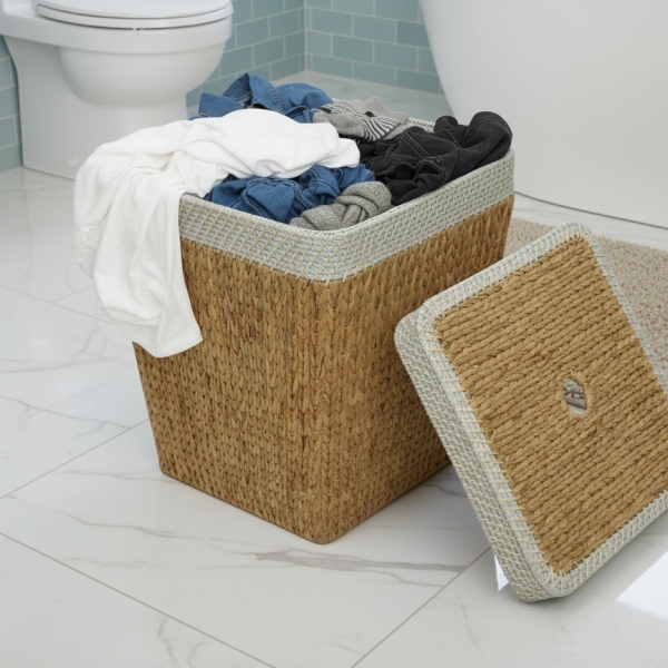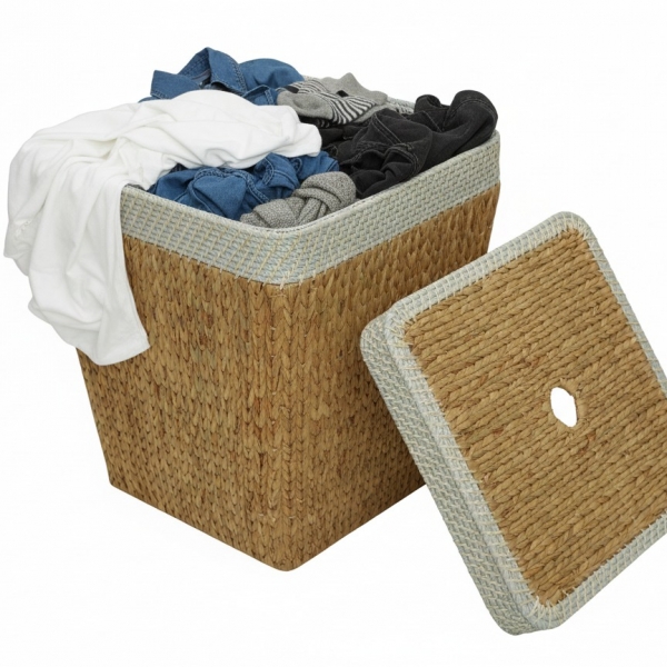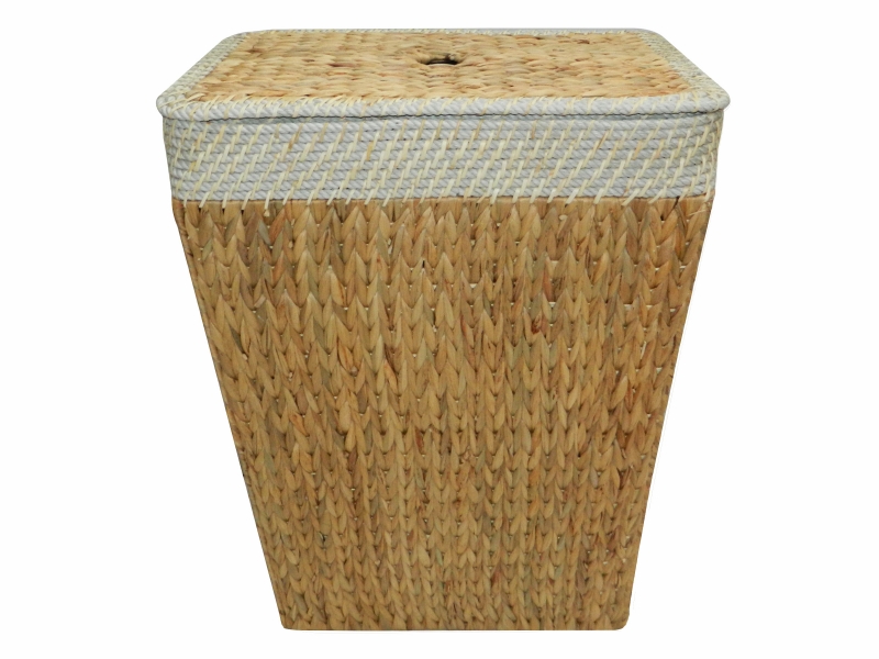 Rectangular water hyacinth hamper with rope rim