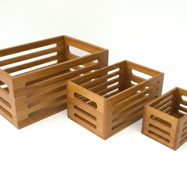 Uncover this innovation with a versatile set of three acacia wood open storage bins, designed to bring both style and organization to any home or office space. These beautifully crafted wooden crates feature a warm, natural finish and a modern slatted design, offering a chic solution for decluttering. Ranging in size, they can be nested or used individually, providing flexible storage for a variety of items. Ideal for enhancing interior aesthetics while maintaining tidiness, these eco-friendly acacia bins blend seamlessly with contemporary, minimalist, or rustic decor themes. Perfect for conscious consumers seeking sustainable and elegant home organization tools in USA and European markets.