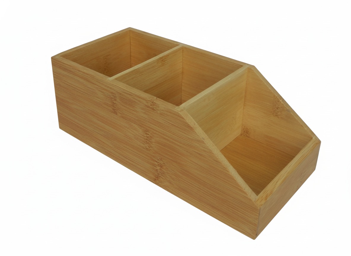 Discover the elegance and functionality of this bamboo desktop organizer, designed to bring order and natural style to any workspace. Crafted from sustainable bamboo, this eco-friendly desk caddy features multiple compartments, including two square sections perfect for pens, pencils, and markers, alongside a convenient slanted compartment ideal for notepads, mobile phones, or letters. Its warm, natural wood grain adds a touch of organic sophistication, making it a perfect addition to a home office, corporate desk, or even a craft station. This versatile storage solution helps declutter your essential items, promoting a more organized and productive environment. Enhance your desk decor with this minimalist yet highly practical bamboo organizer, a staple for modern living.