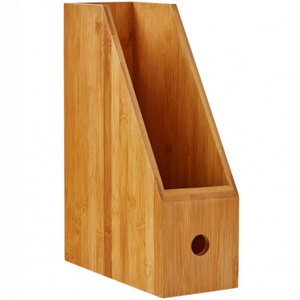 Organize your workspace with this elegant bamboo magazine holder, a perfect blend of natural aesthetics and practical functionality. Crafted from sustainable bamboo, this file organizer features a warm, natural wood grain finish that adds a touch of eco-friendly sophistication to any office or home setting. Its sturdy construction is designed to keep magazines, documents, notebooks, or folders neatly upright and easily accessible. The thoughtful design includes a convenient circular cutout handle on the front for effortless transport and repositioning. Ideal for decluttering desks, shelves, or countertops, this stylish bamboo storage solution promotes a tidy environment, enhancing productivity and reducing visual clutter. A versatile and sustainable choice for modern homes and offices seeking efficient and beautiful organization.