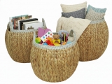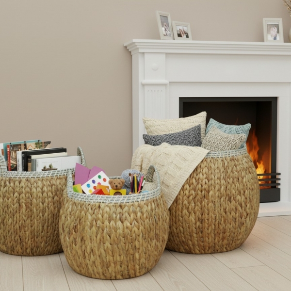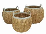 Round water hyacinth storage basket with rope rim, set of 3 pcs