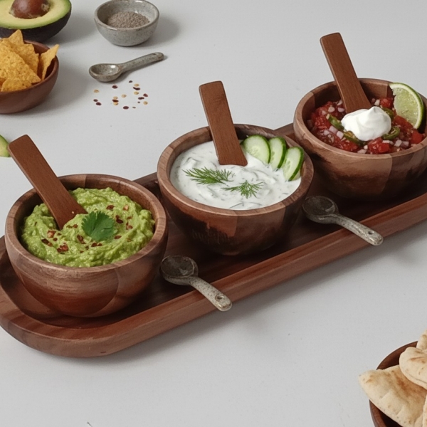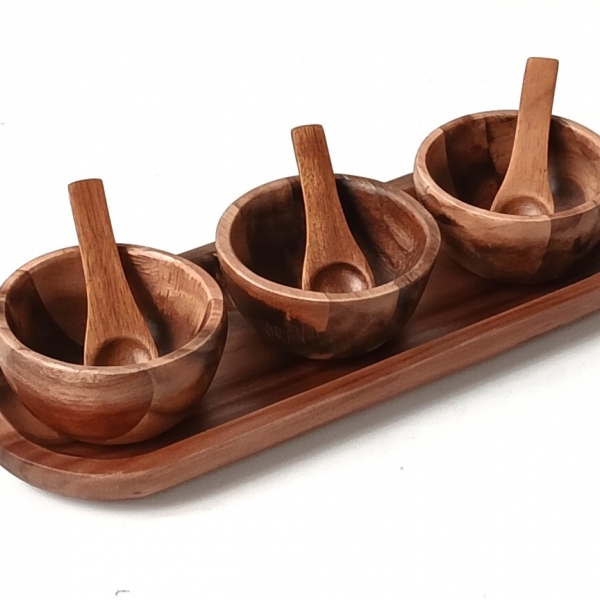 4pc acacia dip bowl set