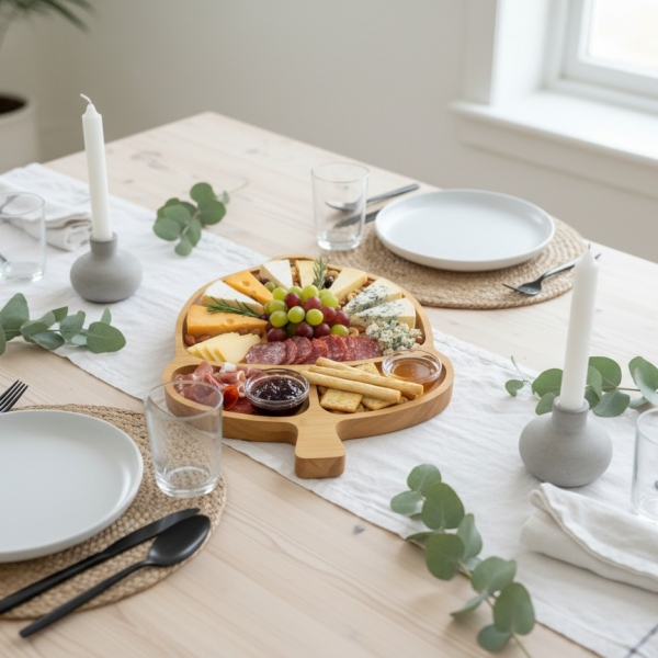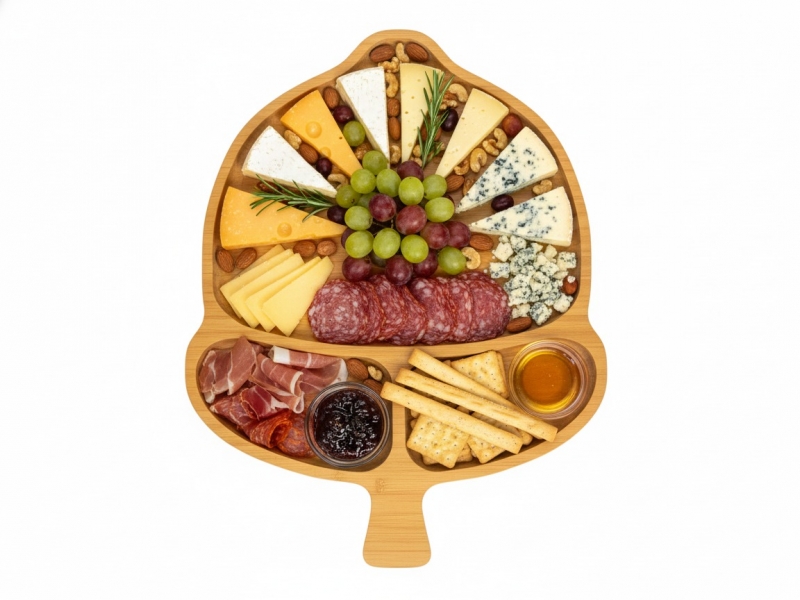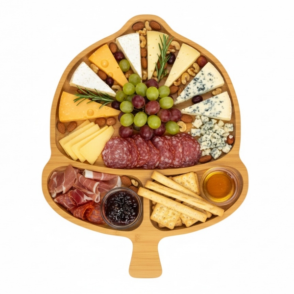 Discover this charming pine cone shaped bamboo serving platter, a delightful addition to any home or gathering. Crafted from sustainable bamboo, this eco-friendly dish features a distinctive natural wood grain and a unique silhouette, perfectly capturing the essence of rustic elegance. The platter is thoughtfully designed with two distinct compartments, ideal for elegantly presenting a variety of snacks, appetizers, or treats. Its larger upper section can hold a main item like crackers or cheese, while the smaller, elongated lower section is perfect for dips, olives, or nuts. This versatile serving piece is not only practical for entertaining guests but also serves as a beautiful decorative accent. Elevate your table setting with this stylish, durable, and naturally appealing wooden platter, perfect for everyday use or special occasions. Its SEO-friendly design makes it a top choice for those seeking sustainable and aesthetic kitchenware.