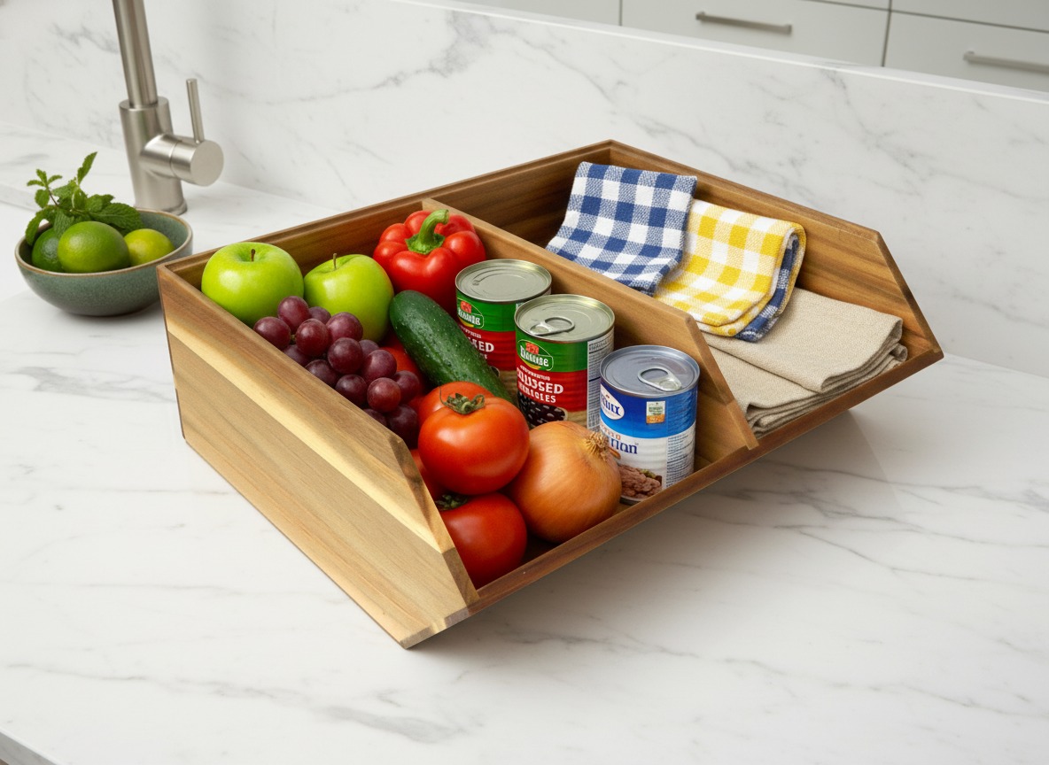 Acacia Wood Pantry Bin with Dividers - Versatile Kitchen Storage Organizer