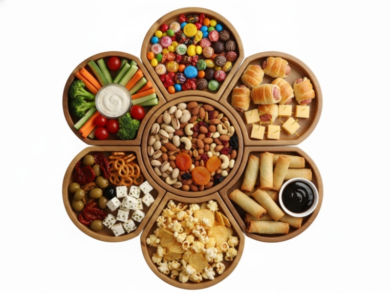 • Versatile Design: Unique flower-shaped layout with multiple compartments, ideal for serving a diverse array of snacks, appetizers, or desserts.
