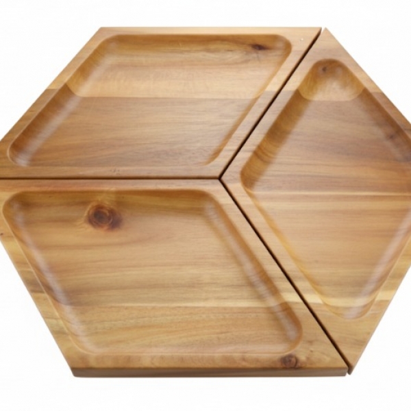 Bring home the timeless elegance of this modular acacia wood serving platter, designed to enhance any gathering or everyday meal. This versatile hexagonal platter features three distinct triangular sections, each carved with a gentle recess, perfect for presenting an array of appetizers, snacks, cheeses, or dips. Crafted from rich, natural acacia wood, it showcases beautiful grain patterns and offers a warm, inviting aesthetic. Its unique interlocking design allows for flexible arrangement, making it ideal for entertaining guests or simply adding a touch of rustic sophistication to your home decor. Environmentally friendly and durable, this stylish platter is a must-have for modern hosts seeking both functionality and aesthetic appeal.