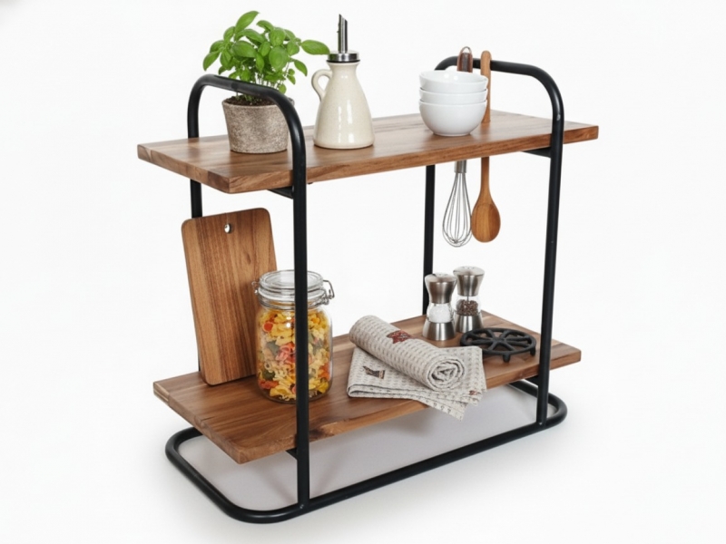 Acacia Wood Kitchen Shelf with Metal Frame - Two-Tier Organizer