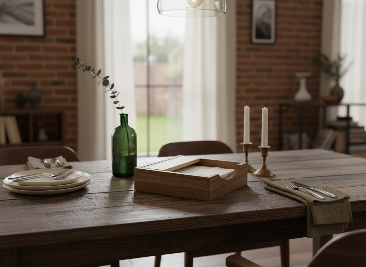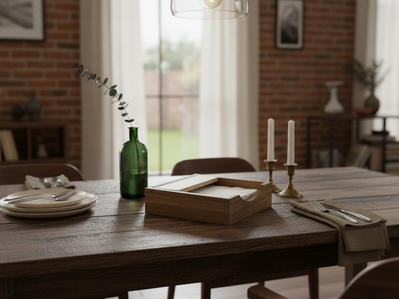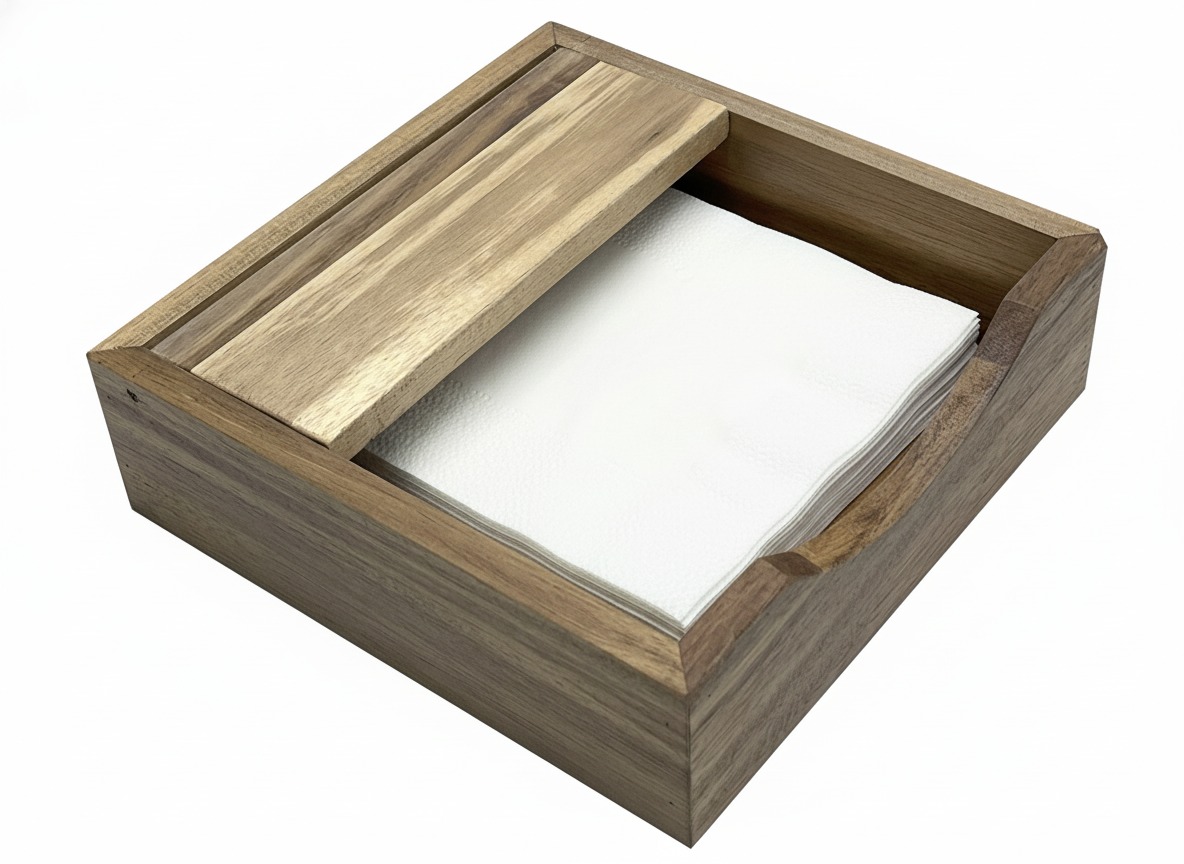 Discover this elegantly crafted acacia wood napkin holder, designed to bring natural warmth and sophisticated organization to any dining setting or kitchen counter. Its robust square form, showcasing beautiful natural wood grain, offers both durability and timeless style. The thoughtful design includes an elevated internal bar, perfectly suited to keep napkins neatly in place and easily accessible, whether they are paper or cloth. This versatile piece not only serves as a practical napkin dispenser but also enhances your home decor with its rustic yet modern aesthetic. Ideal for everyday use, special occasions, or outdoor dining, this acacia napkin holder is a perfect blend of functionality and eco-friendly design, making it a must-have for those who appreciate quality and sustainable living. It's built to last and adds a touch of organic elegance.