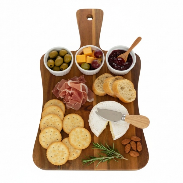 Acacia Wood Charcuterie Board with Handle - Gourmet Serving Platter
