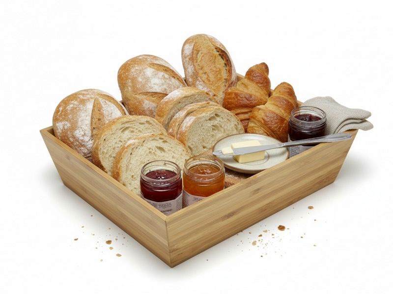 The natural bamboo bread basket is a versatile and eco-friendly addition to any kitchen or dining setting. Crafted from sustainable bamboo, it exudes a rustic charm while offering practical functionality. Its woven design provides ample ventilation, keeping bread and baked goods fresh for longer periods. The basket's sturdy construction ensures durability and easy maintenance. Its lightweight nature makes it effortless to carry and serve, adding an elegant touch to brunches, picnics, or dinner parties. With its natural aesthetics and sustainable material, the bamboo bread basket is a delightful choice for those who appreciate both style and environmental consciousness in their culinary endeavors.