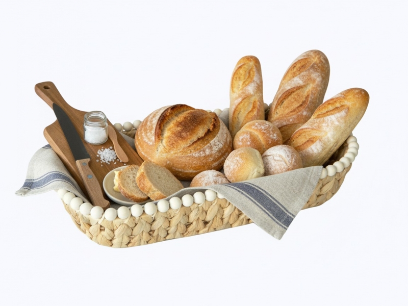 The oval water hyacinth bread basket with wooden bead is a charming and eco-friendly addition to any kitchen or dining space. Handcrafted with care, it showcases the natural beauty of water hyacinth, woven into an elegant oval shape. The intricate weaving pattern provides durability and ensures that the basket can safely hold and display your favorite breads and pastries. The addition of a wooden bead as a decorative element adds a touch of rustic charm to the design. Not only does this bread basket serve a practical purpose, but it also brings a warm and inviting aesthetic to your table setting, making it a delightful choice for any home.