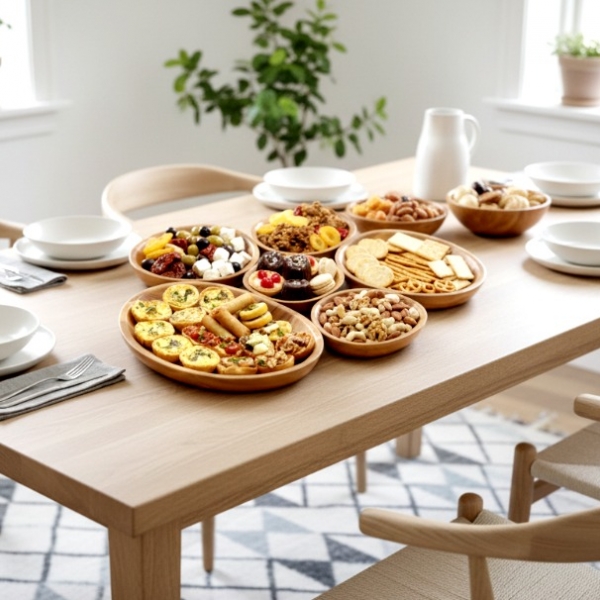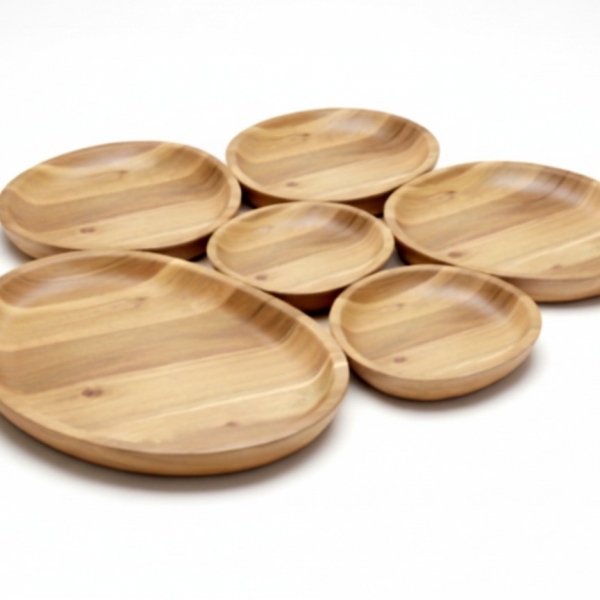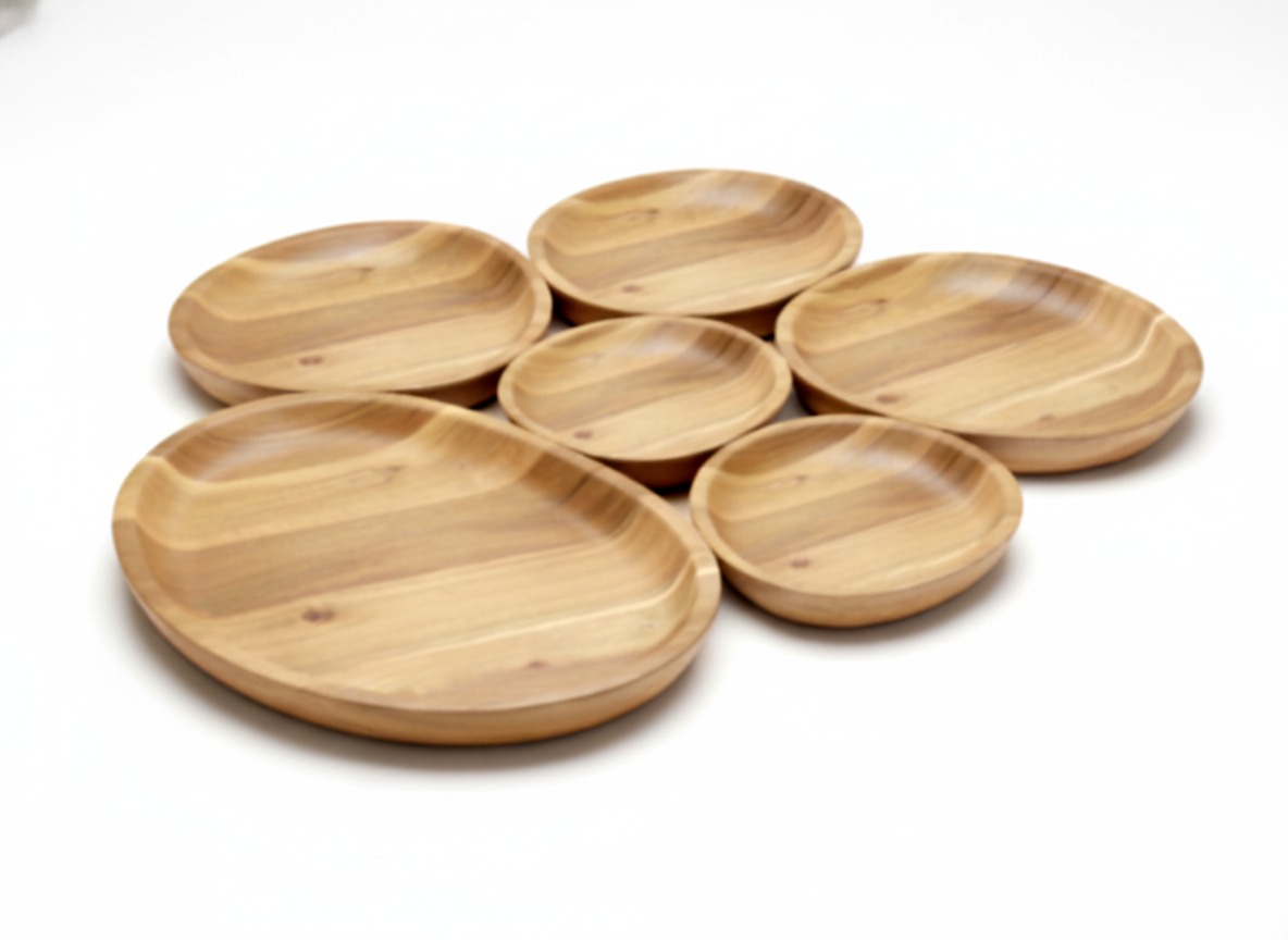 Discover our exquisite Acacia Zen Platter set, a collection of six beautifully crafted wooden serving dishes designed to bring natural elegance to your dining experience. Each platter, made from sustainable acacia wood, showcases unique grains and a smooth, organic finish, resembling natural pebbles. Their varied, irregular oval shapes and sizes offer versatile options for presenting appetizers, side dishes, or decorative accents. This eco-friendly and modern kitchenware collection is perfect for enhancing any table setting, from casual family meals to sophisticated dinner parties. Elevate your home decor with these functional yet artistic wooden bowls, a must-have for those who appreciate mindful living and natural aesthetics. Their contemporary design complements both minimalist and rustic interiors, making them a timeless addition to your kitchen.