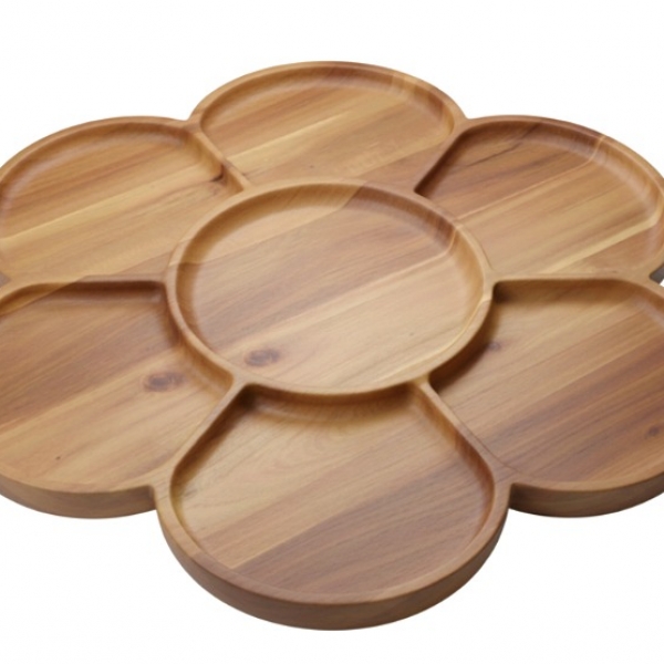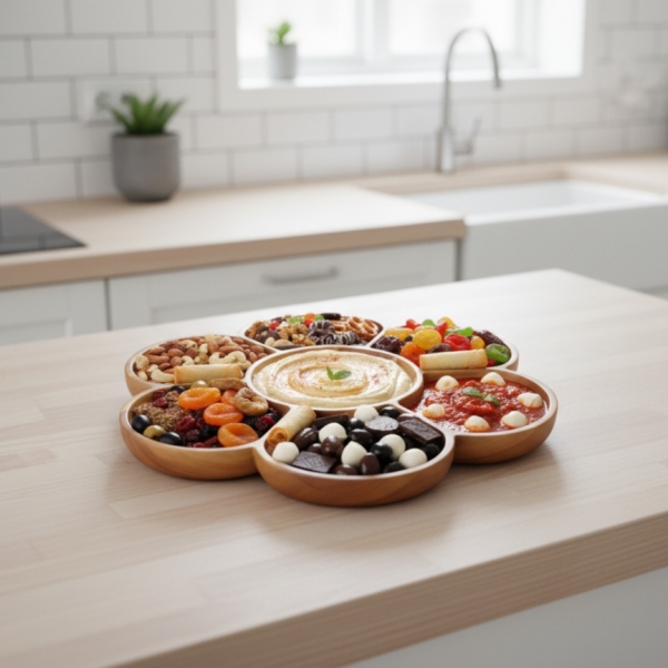 Discover this beautifully crafted acacia wood serving platter, featuring a unique multi-compartment design reminiscent of a delicate flower. Perfect for entertaining, this versatile tray offers seven distinct sections, ideal for presenting an assortment of snacks, appetizers, nuts, candies, or even a charcuterie spread. Made from durable and sustainable acacia wood, its natural grain and warm tones bring an organic elegance to any table setting or home decor. Whether hosting a dinner party, family gathering, or simply enjoying a quiet evening, this stylish and functional platter enhances your presentation. Its thoughtful design allows for organized serving, making it a must-have for modern living and a wonderful gift for those who appreciate natural home goods and entertaining essentials.