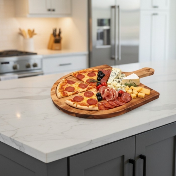Premium Acacia Wood Pizza & Charcuterie Serving Board - Versatile Entertaining Platter