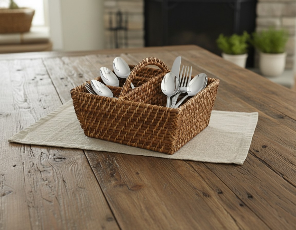 Vietnam rattan flatware caddy