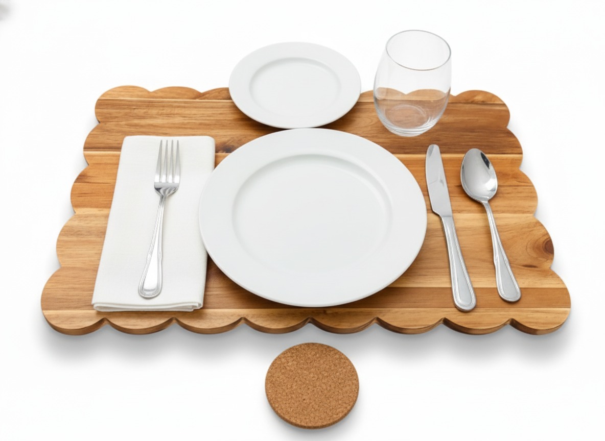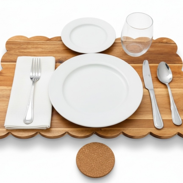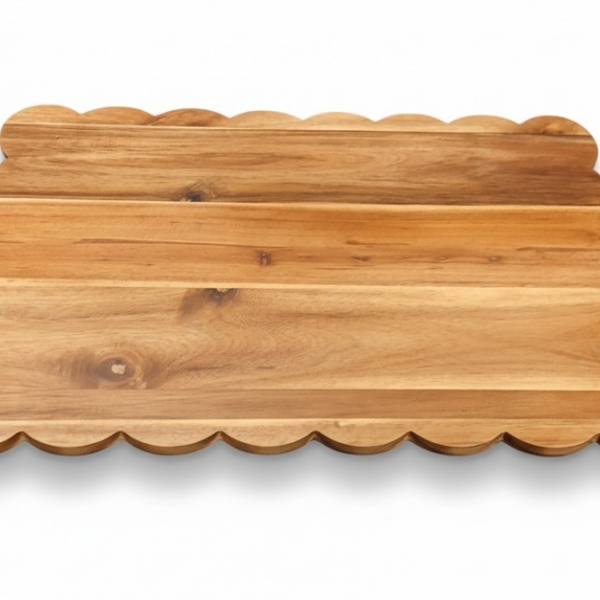 Elevate your dining experience with this beautifully crafted acacia wood scallop placemat. Featuring a unique wavy, scalloped edge design, this versatile board brings a touch of natural elegance to any table setting. Made from durable and sustainably sourced acacia wood, its rich grain and warm tones create a rustic yet sophisticated aesthetic. Perfect for protecting your table as a placemat, or serving as a chic charcuterie board, cheese platter, or decorative tray for appetizers and desserts. Its sturdy construction ensures longevity, while the distinctive shape makes it a focal point for entertaining or everyday use. An ideal addition to modern, farmhouse, or bohemian home decor styles, enhancing both functionality and visual appeal.