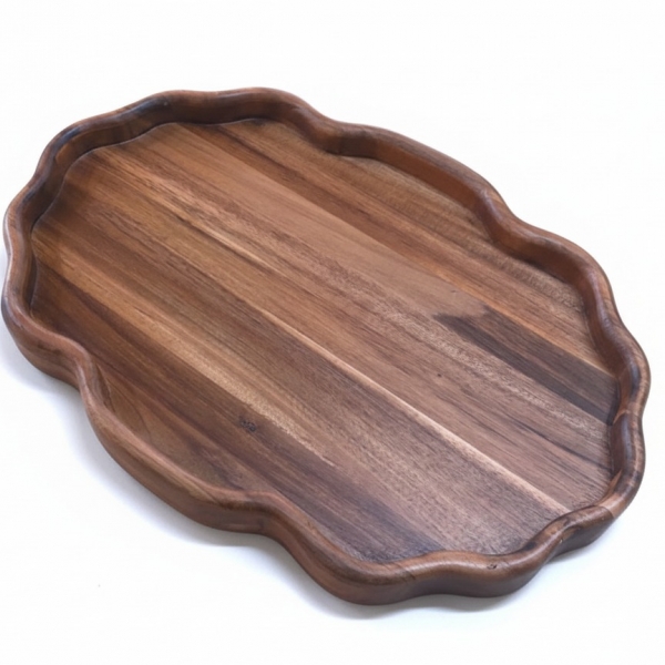 Discover the exquisite charm of this scallop acacia wood tray, a truly versatile piece perfect for elevating your home decor and entertaining needs. Handcrafted from rich, durable acacia wood, this serving platter showcases a beautiful natural grain and a unique, elegant scalloped edge design. Its organic, undulating silhouette adds a touch of rustic sophistication to any setting. Ideal for serving appetizers, cheeses, or desserts, it also functions as a stylish decorative accent on your coffee table or kitchen island. This eco-friendly wooden tray is a must-have for those who appreciate artisanal quality and a modern farmhouse aesthetic, seamlessly blending functionality with timeless appeal for both USA and European markets.