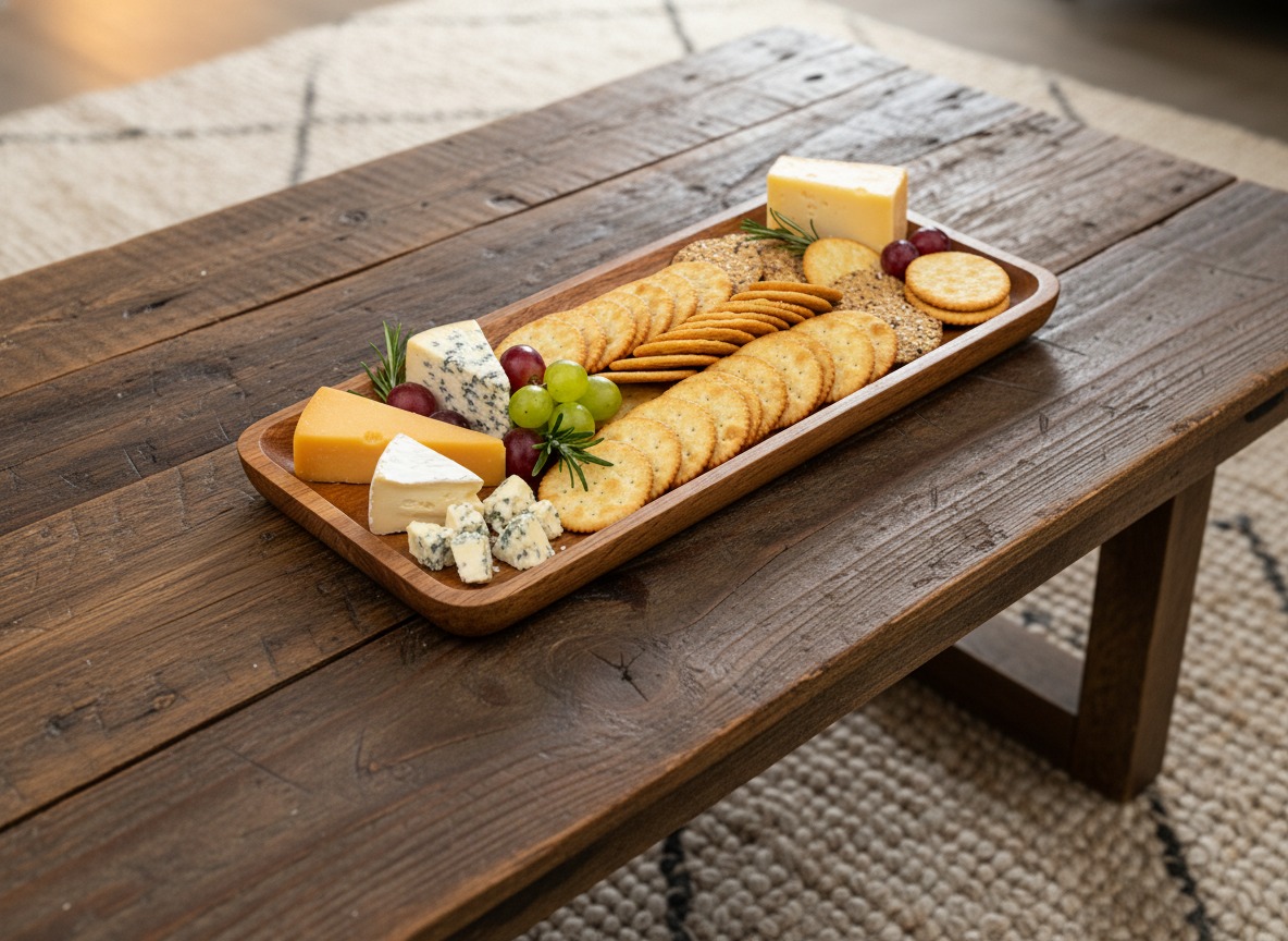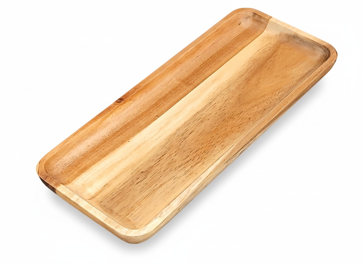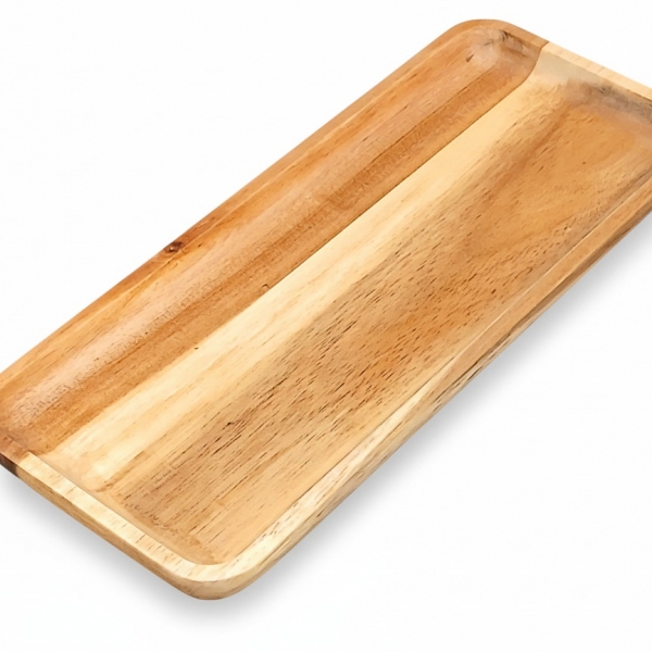 Discover the natural elegance of this rectangular acacia wood long platter, an essential addition to any contemporary home or event. Crafted from sustainably sourced acacia wood, its distinctive grain patterns and warm, inviting tones bring an organic touch to your decor. Perfect for serving appetizers, cheeses, charcuterie, or delectable desserts, this versatile tray also excels as a stylish organizer. Use it to neatly arrange candles, remote controls, or mail on a coffee table or entryway console. Its durable and easy-to-clean surface makes it ideal for everyday use, while its sophisticated design elevates any gathering. Embrace sustainable living with this beautiful and functional acacia serving tray, seamlessly blending utility with minimalist aesthetic.