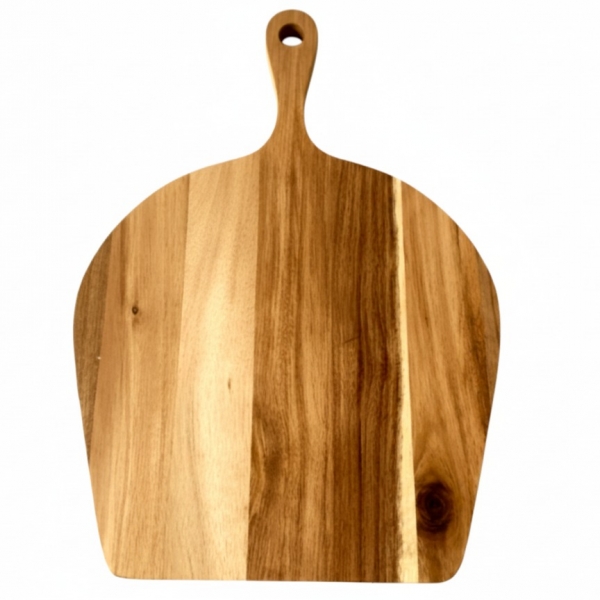 Discover the elegance and functionality of this premium acacia wood pizza board, perfect for both culinary enthusiasts and home entertainers. Crafted from beautiful acacia wood, renowned for its durability and rich grain variations, this board features a distinctive paddle shape and a convenient handle with a hanging hole. Ideal for baking, serving, and presenting your favorite pizzas, flatbreads, cheeses, or charcuterie. Its natural warmth adds a rustic yet sophisticated touch to any kitchen or dining setting. Designed for easy handling and display, it’s a versatile kitchen essential that combines practicality with timeless style, making every meal a special occasion. Enhance your home with this durable and aesthetically pleasing wooden serving piece, perfect for everyday use or special gatherings.
