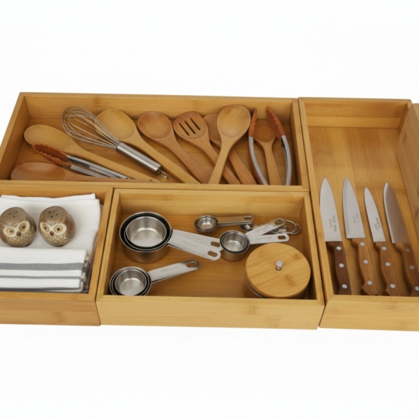 Discover the ultimate solution for a clutter-free home with this versatile 4-piece bamboo drawer organizer set. Crafted from sustainable, natural bamboo, these modular trays offer an eco-friendly and stylish way to organize any space. Perfect for kitchen drawers, office desks, bathroom vanities, or craft tables, they help sort everything from cutlery and utensils to stationery, cosmetics, and small accessories. Their durable construction and minimalist design ensure a clean aesthetic while maximizing storage efficiency. Easily arrange and rearrange these stackable inserts to fit your specific needs, transforming messy drawers into perfectly ordered systems. A must-have for modern, organized living in both residential and commercial settings.