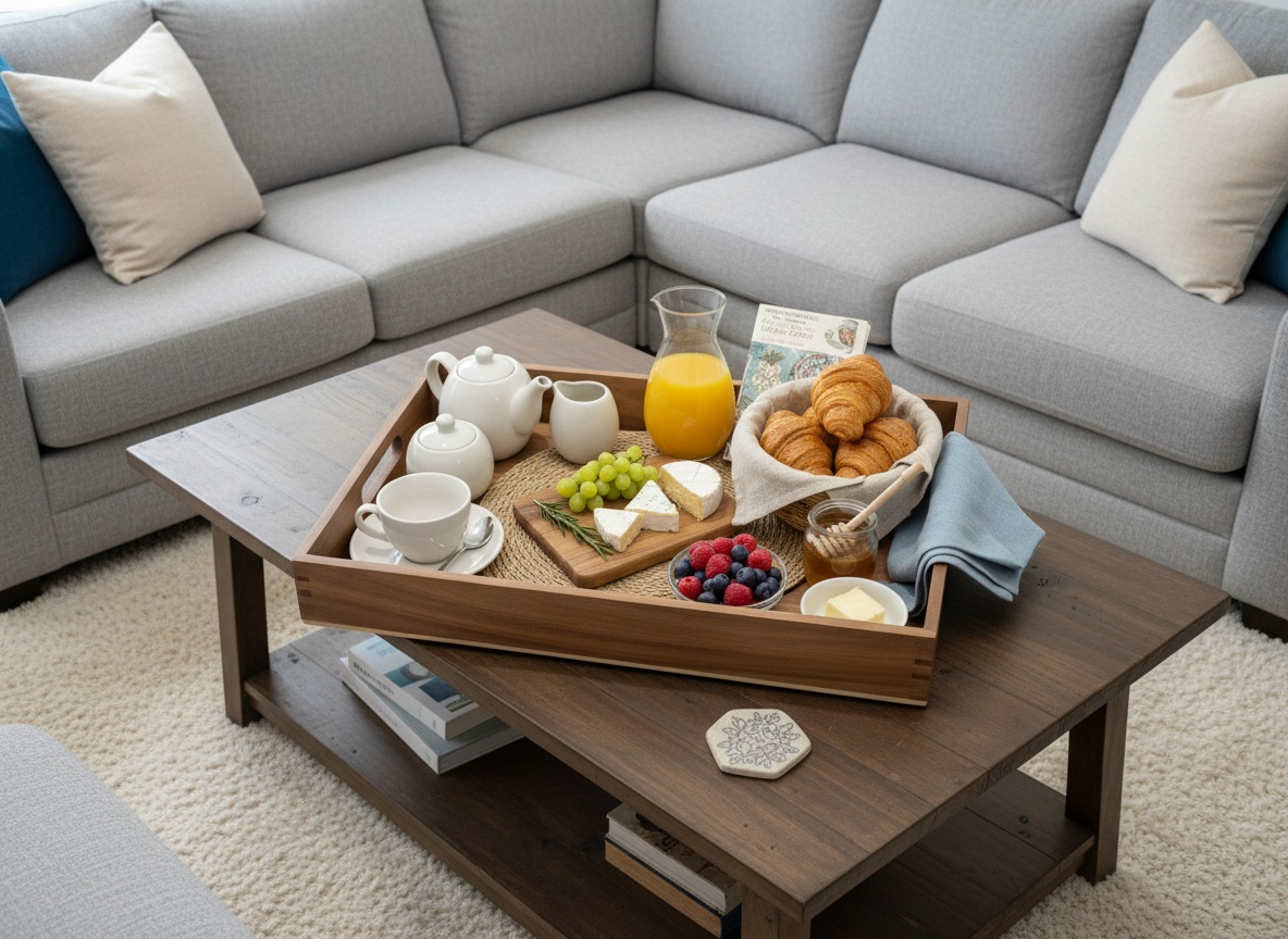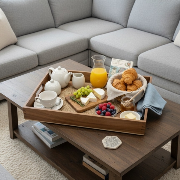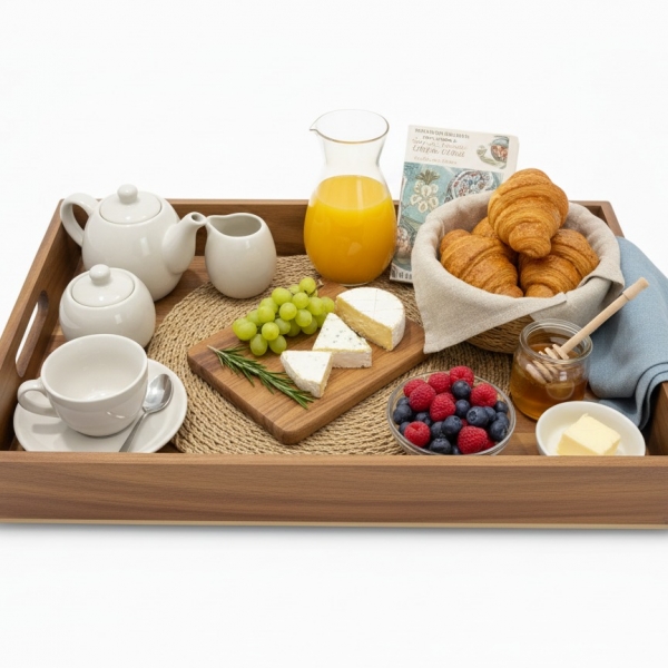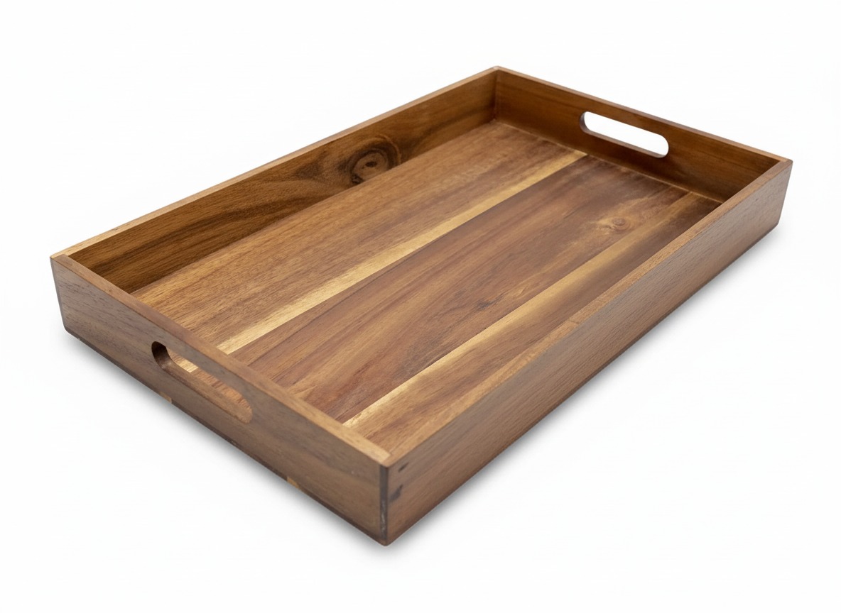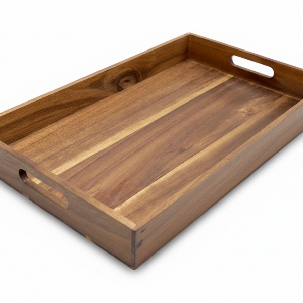 Discover this beautifully crafted rectangular wooden serving tray, ideal for elevating your home decor and entertaining. Made from rich, natural wood with distinctive grain patterns, it features practical integrated handles for effortless transport. Perfect for serving refreshments, organizing essentials, or as a stylish centerpiece on coffee tables and ottomans, this versatile tray combines rustic elegance with modern functionality, enhancing any living space.