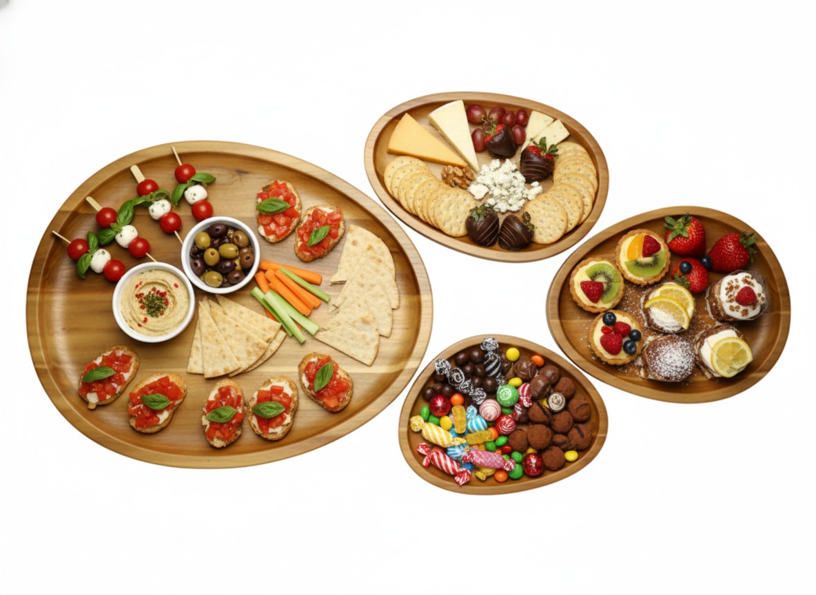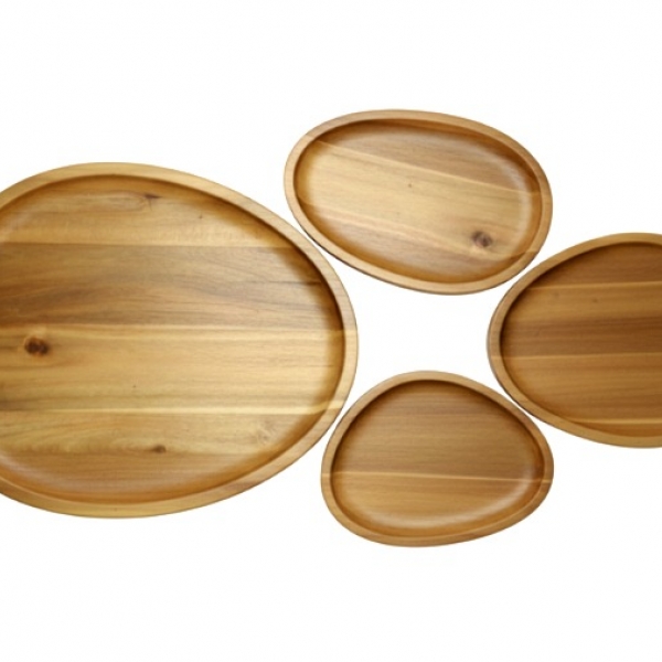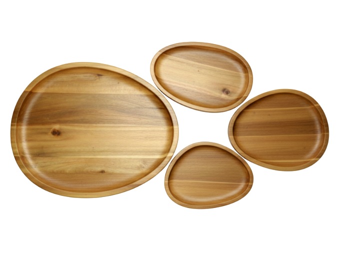 Be impressed with the serene elegance of this set of four acacia wood platters, designed with unique organic shapes that evoke a tranquil, Zen-like aesthetic. Each piece showcases the beautiful natural grain and warm tones of acacia wood, bringing an element of rustic charm and modern sophistication to any setting. Ideal for serving appetizers, desserts, or small bites, these versatile trays also function beautifully as decorative accents. Their varied sizes allow for creative arrangements on a coffee table, dining table, or kitchen island. Perfect for those who appreciate natural materials and minimalist design, these durable wooden platters enhance both everyday living and special occasions in contemporary and traditional homes across the USA and Europe.