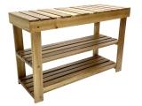 Discover the versatility and natural beauty of this three-tiered acacia wood bath bench, perfect for enhancing any bathroom or spa environment. Crafted from durable, water-resistant acacia wood, its slatted design promotes optimal airflow and quick drying, making it an ideal shower seat or practical storage solution. The rich, warm tones of the natural wood grain add a touch of organic elegance to your space. With its sturdy construction and multiple shelves, this multifunctional bench provides convenient storage for towels, toiletries, and decorative items, or offers a comfortable seating option. Its compact yet spacious design makes it suitable for both small and large bathrooms, mudrooms, or even entryways, blending seamlessly with various decor styles from modern minimalist to rustic charm. This acacia bath bench is a stylish and functional addition designed for lasting use.