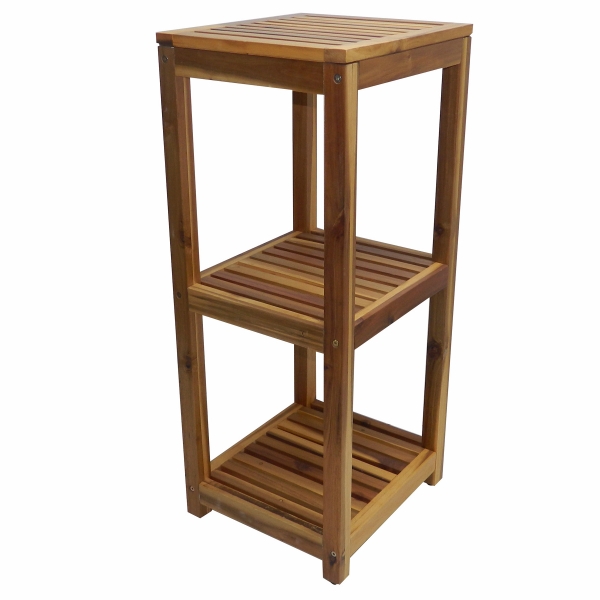 This versatile three-tiered acacia wood bath tower offers a stylish and practical storage solution for any home. Crafted from durable and sustainably sourced acacia wood, its natural grain and slatted design bring a warm, organic aesthetic to your space. Ideal for organizing towels, toiletries, or decorative items, this compact shelving unit maximizes vertical storage in bathrooms, laundries, or even as a plant stand in living areas. The robust construction ensures longevity, while its minimalist design seamlessly complements both modern and traditional decor. Enhance your home's functionality and visual appeal with this elegant, space-saving acacia wood tower, perfect for decluttering and adding a touch of natural beauty.