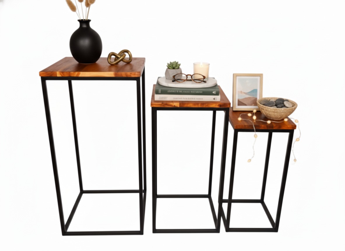 Enhance modern interiors with our versatile Acacia Wood & Metal Frame Nesting End Tables, meticulously handcrafted by skilled artisans at Ngoc Dong in Vietnam.