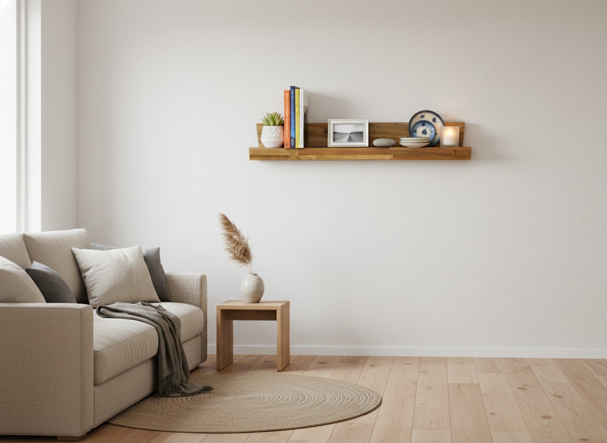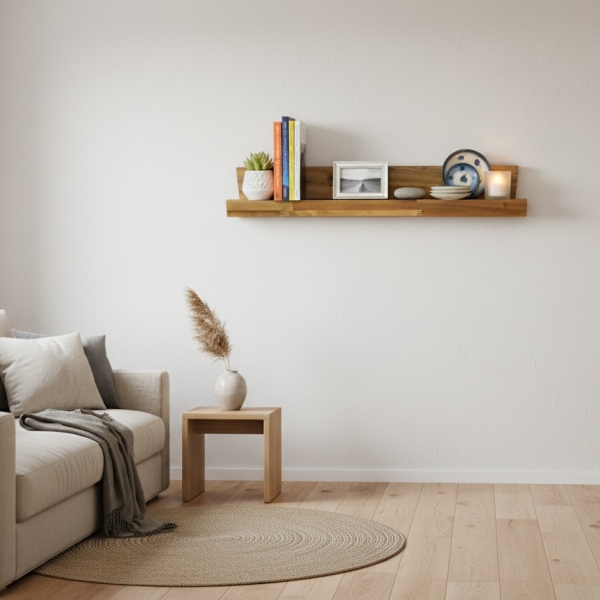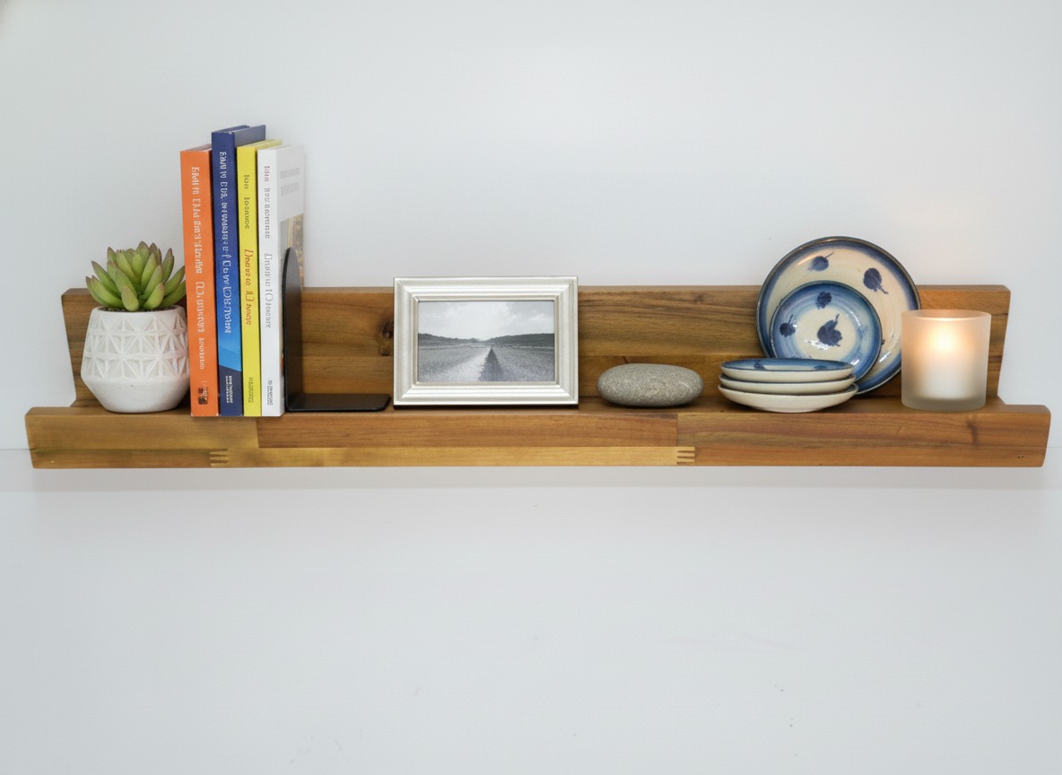 This image showcases a beautifully crafted U-shaped wall shelf, exuding natural warmth with its rich wooden construction. Ideal for modern and rustic interior designs, this solid wood shelf offers both functional storage and an attractive display solution. The visible wood grain and segmented construction add character, making each piece unique. Perfect for organizing small items or showcasing decorative accents, it seamlessly blends into various room settings. Enhance your living space, bedroom, or home office with this elegant and practical floating shelf, providing a touch of nature-inspired design and essential wall-mounted storage without occupying floor space. Its sleek profile is designed to complement contemporary aesthetics while offering versatile utility.